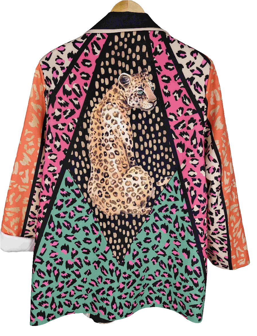 Sehr schöner, leichter Blazer mit Innenfutter ( auch in den Ärmeln ) und 2 angedeuteten Taschen, in drei verschiedenen Prints.