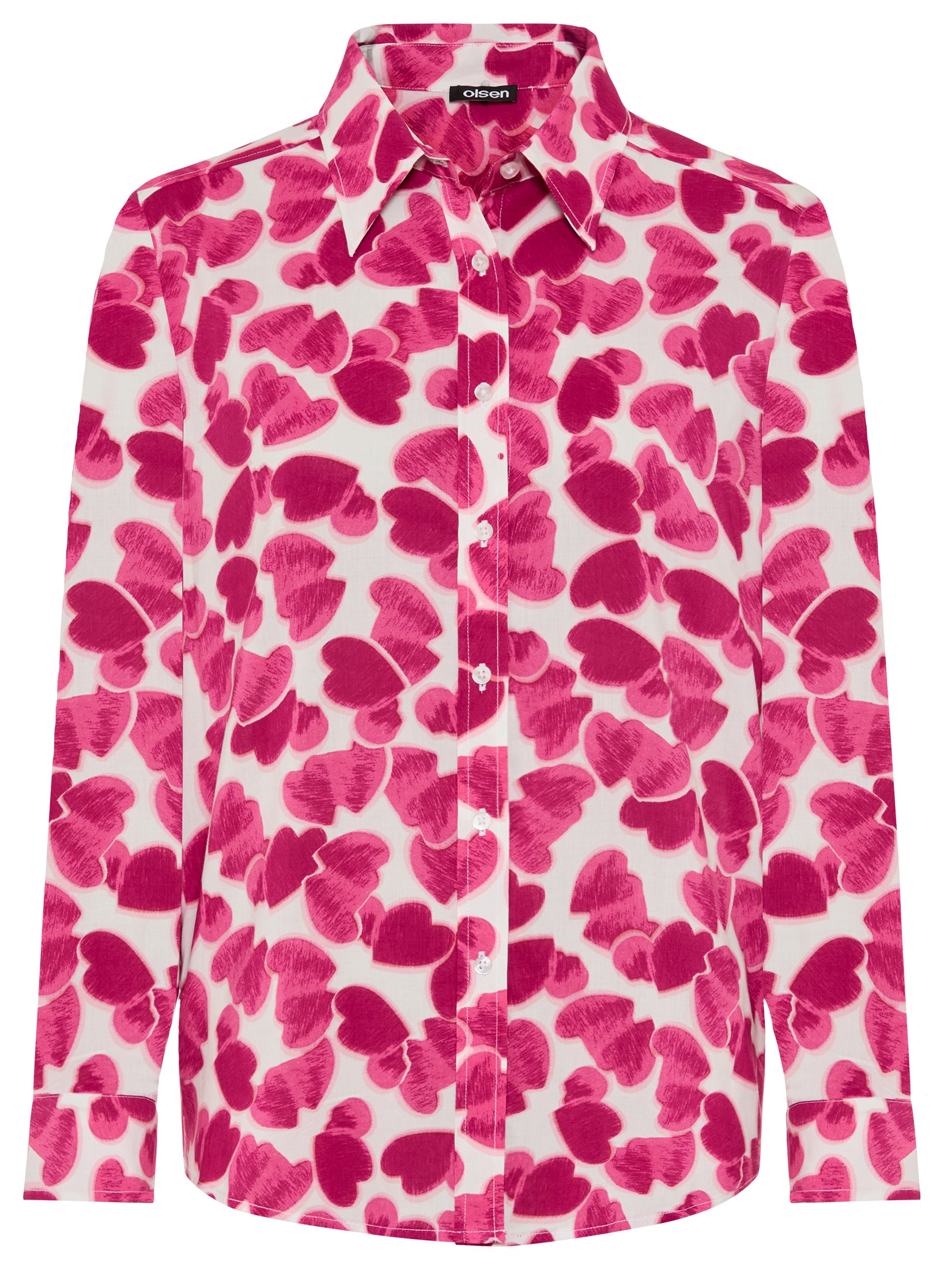 Ein Hauch von Leichtigkeit zieht in die Garderobe ein: Die gemusterte Bluse aus softem Baumwoll-Viscose-Popeline überzeugt mit einem fließenden Fall und einer glatten, angenehm kühlen Oberfläche. Der klassische Hemdblusenkragen und die durchgehende Knopfleiste sorgen für eine feminine, zugleich gepflegte Optik. Seitenschlitze und die legere Silhouette schenken zusätzliche Bewegungsfreiheit – perfekt für Büro und Freizeit gleichermaßen. Bonus: Dieser Style enthält LENZING™ ECOVERO™ Viscose, die aus zertifizierten oder kontrollierten Holzquellen gewonnen wird. LENZING™ und ECOVERO™ sind Marken der Lenzing AG. Länge ca. 66 cm.