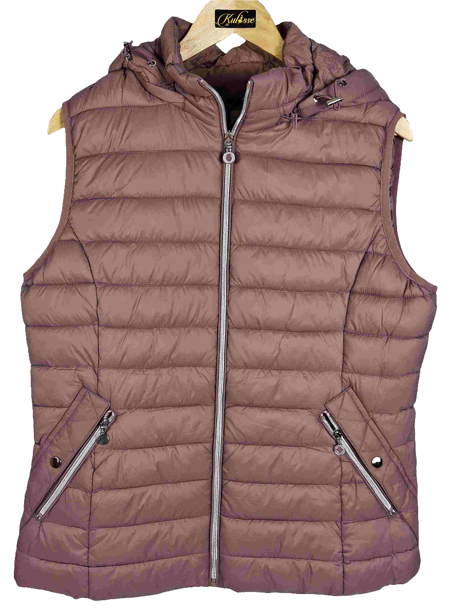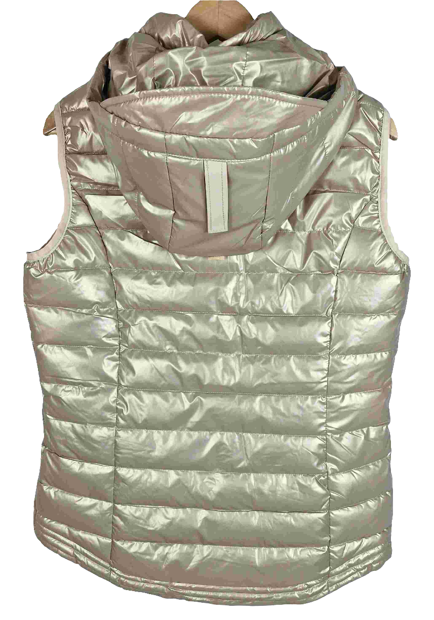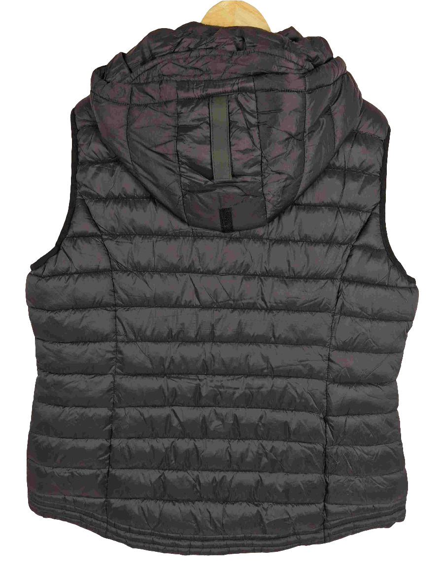 Leichte, sportliche Weste mit abnehmbarer Kapuze und 2 Eingrifftaschen mit Reißverschlüssen.