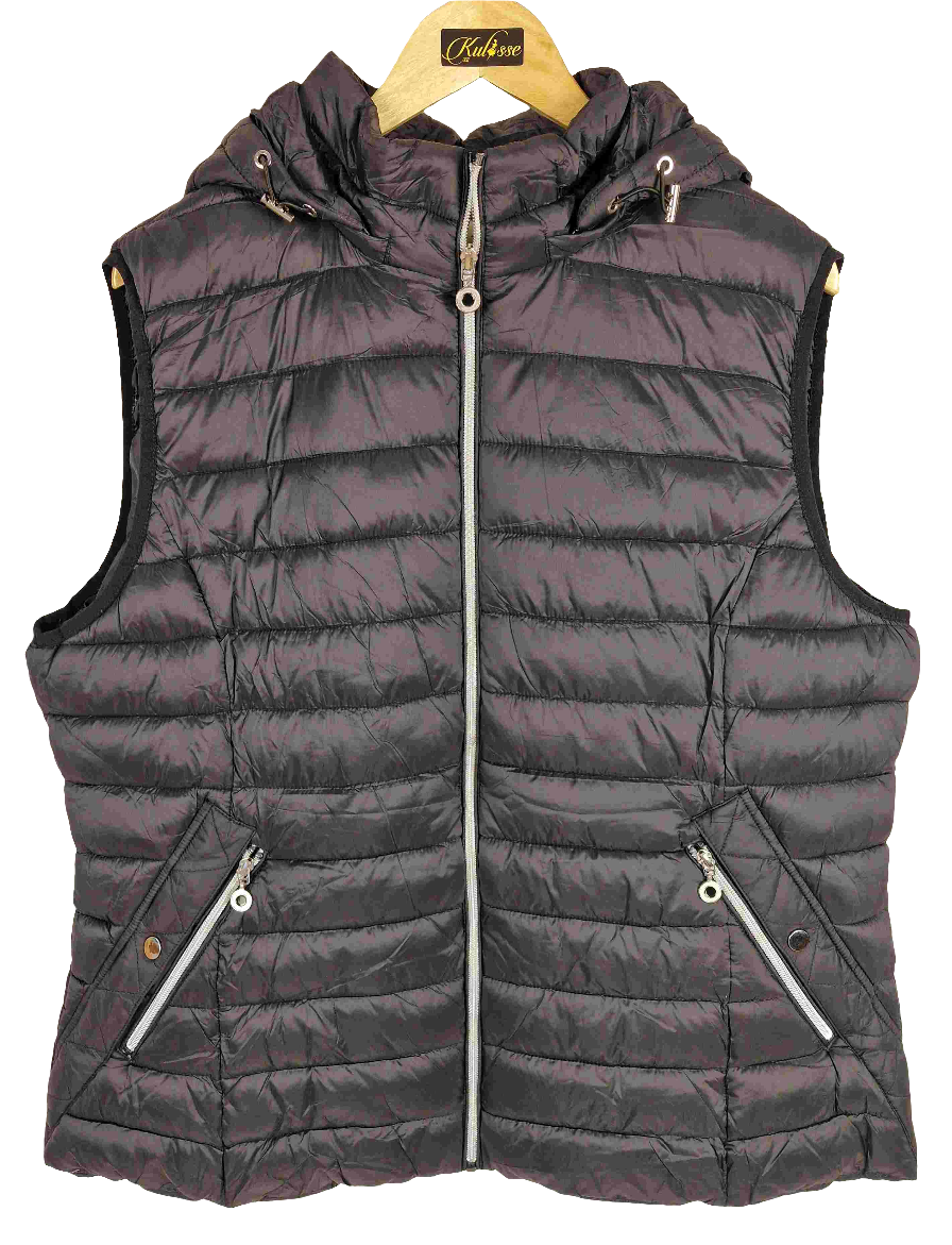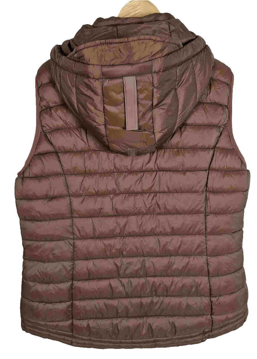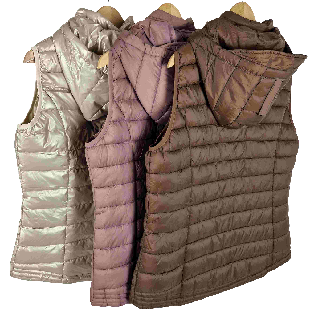 Leichte, sportliche Weste mit abnehmbarer Kapuze und 2 Eingrifftaschen mit Reißverschlüssen.