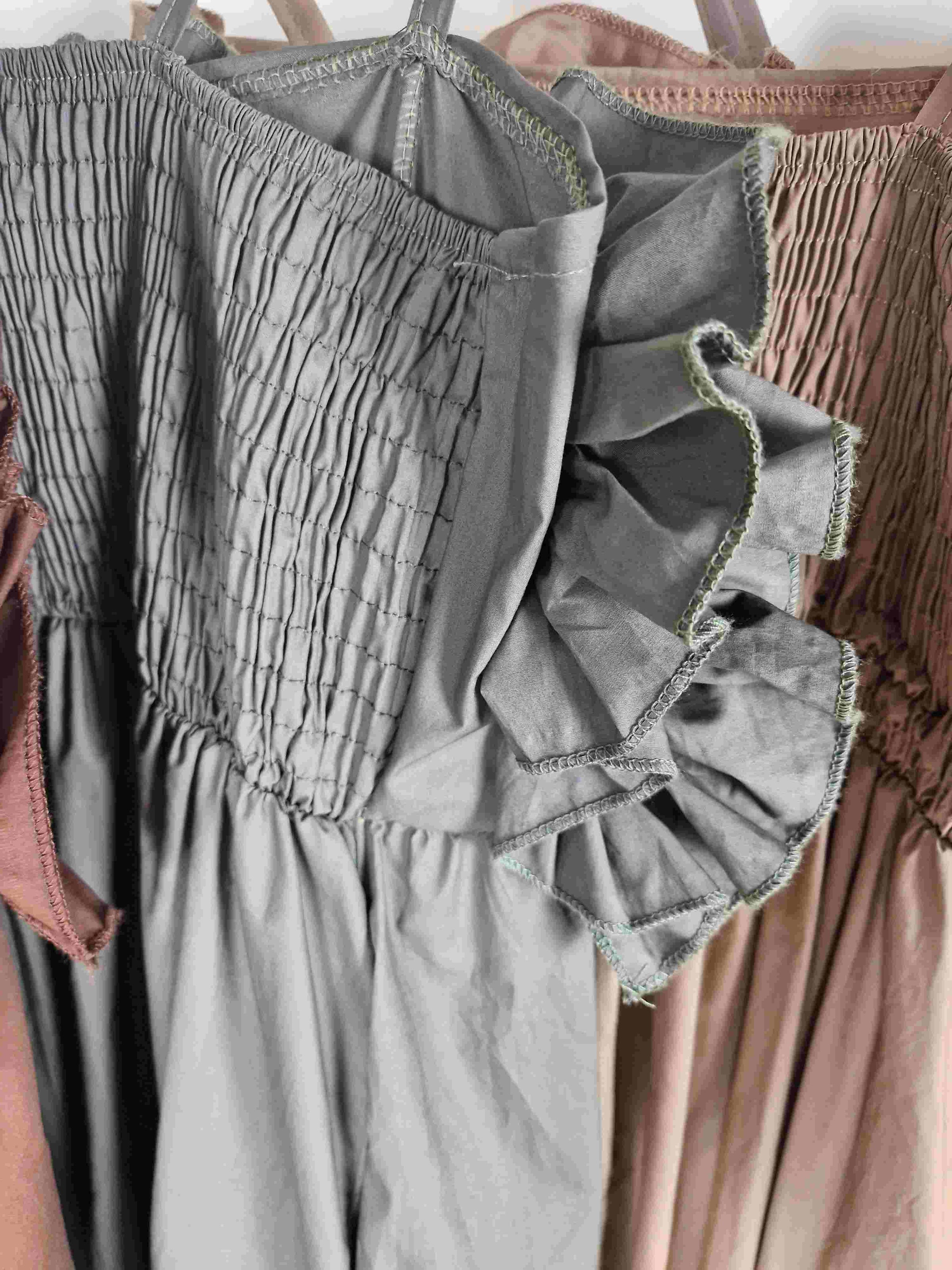 Ausgefallenes Kleidchen für alle Anlässe. Midi-Kleid, breiter Gummizug im Rücken für einen perfekten Sitz. Vorderteil mit Rüschen ( nicht unbedingt ein BH erforderlich ), Spaghetti-Träger und Taschen.